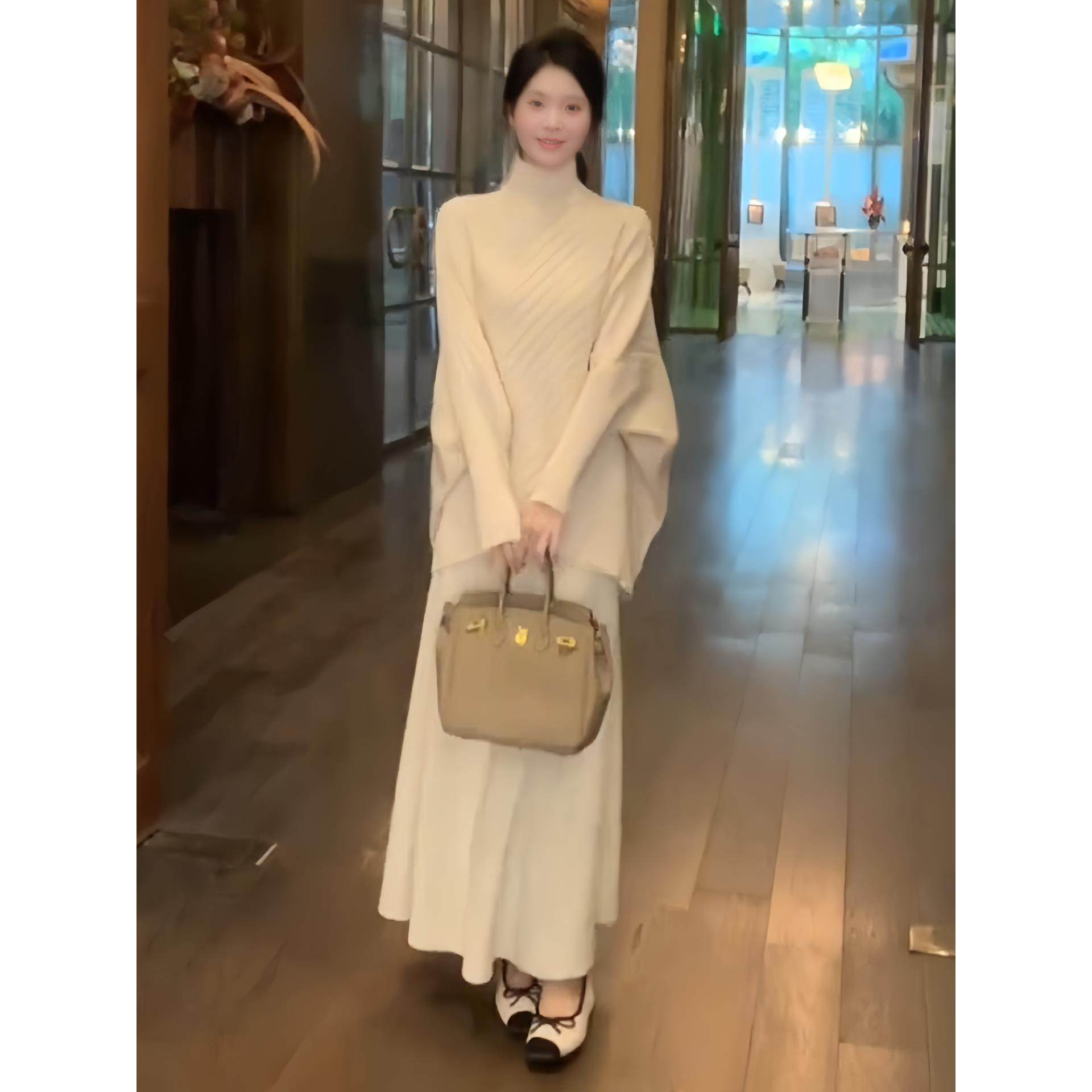 高领蝙蝠袖长袖针织衫女慵懒宽松显瘦质感毛衣绝美巨好看气质上衣