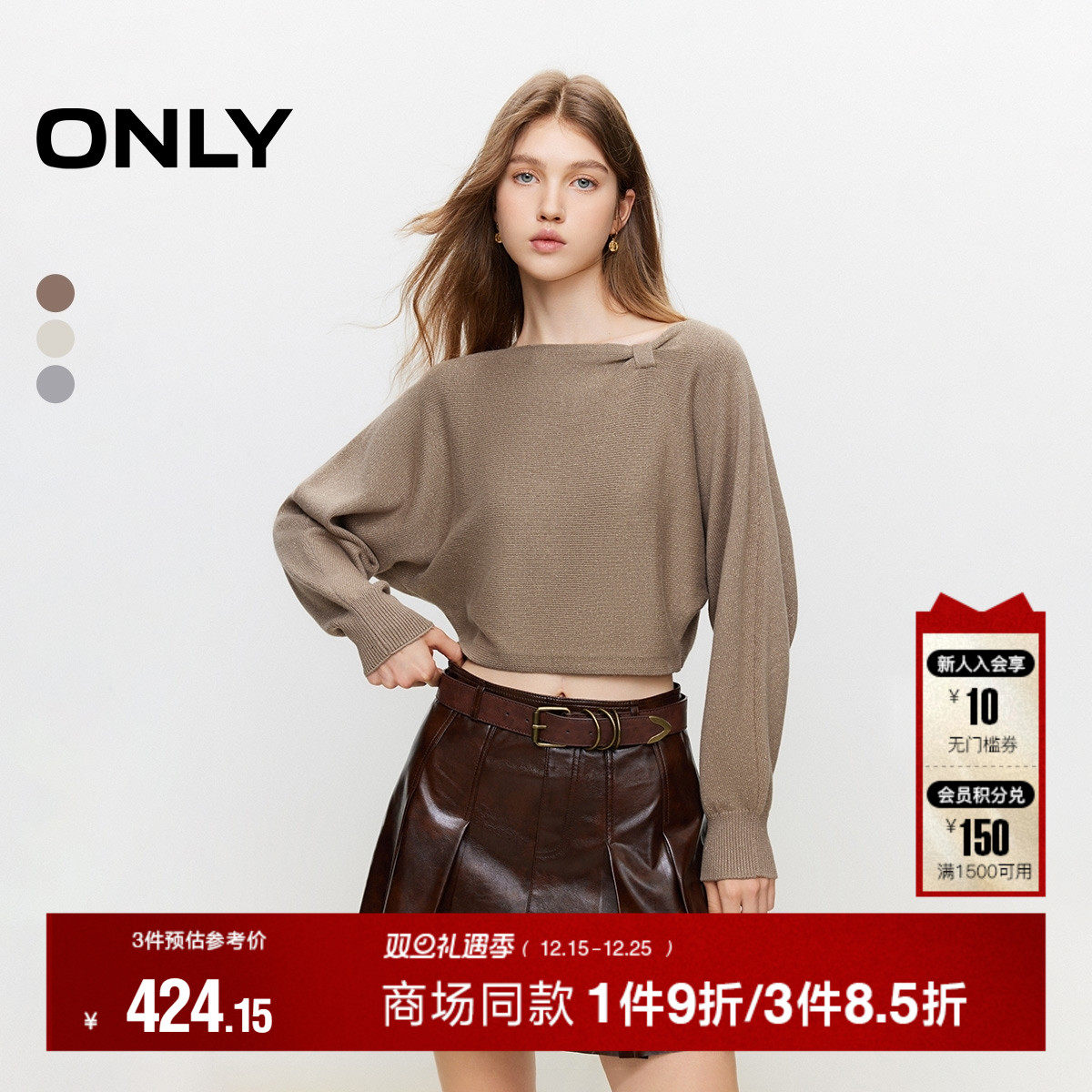 ONLY2026春季新款简约大领口设计蝙蝠袖纯色短款长袖针织衫女