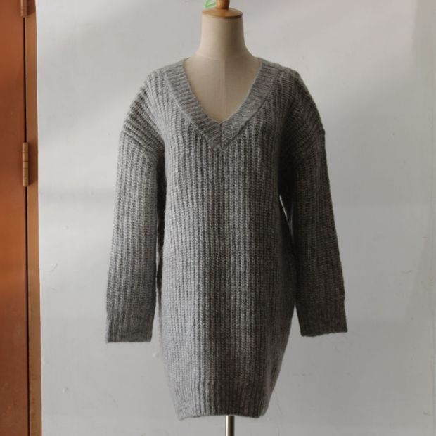 复古休闲百搭V领蝙蝠长袖炒色做旧针套头毛衣春秋棉线针织衫FE888