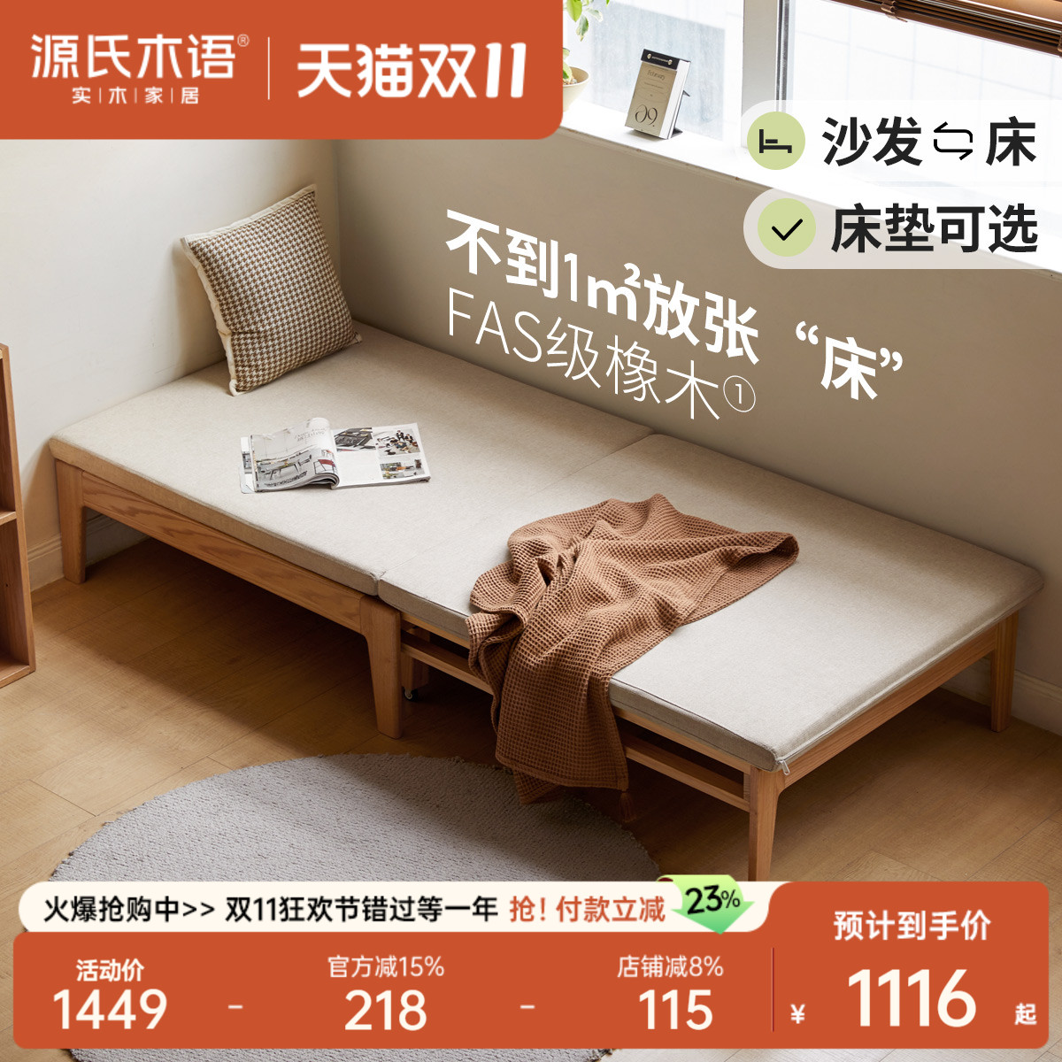 源氏木语百伦沙实木折叠沙发床单人床客厅小户型橡木两用伸缩沙发