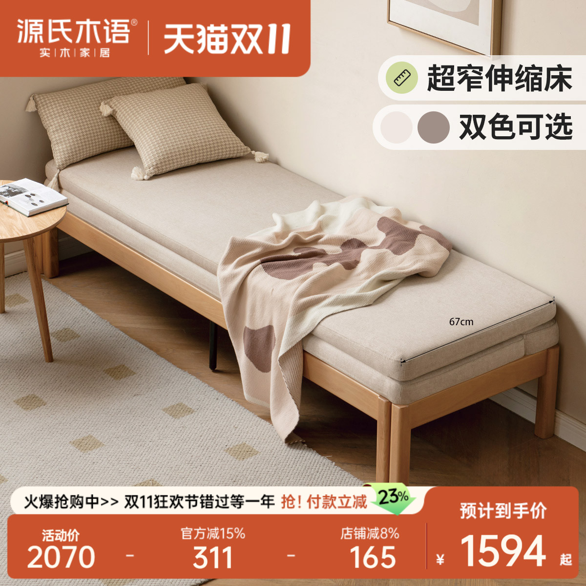 源氏木语实木沙发床折叠两用小户型无扶手坐卧多功能伸缩床抽拉床