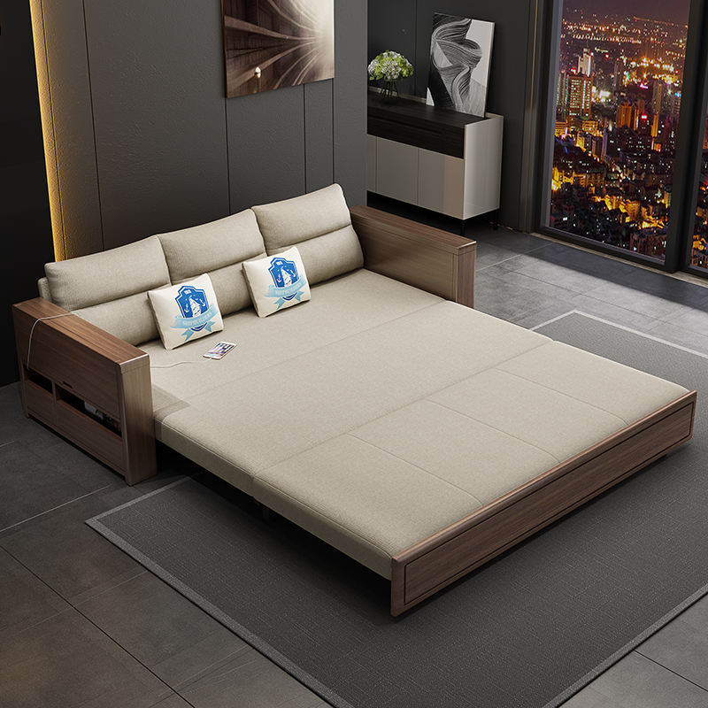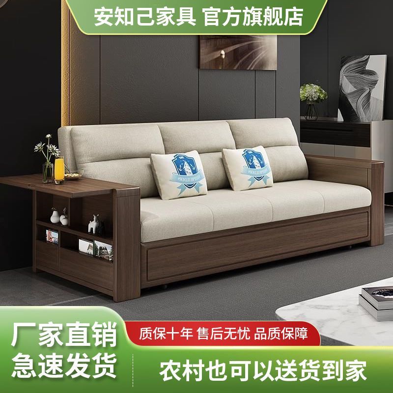 新中式实木折叠沙发床多功能储物小户型客厅坐卧两用胡桃木伸缩床