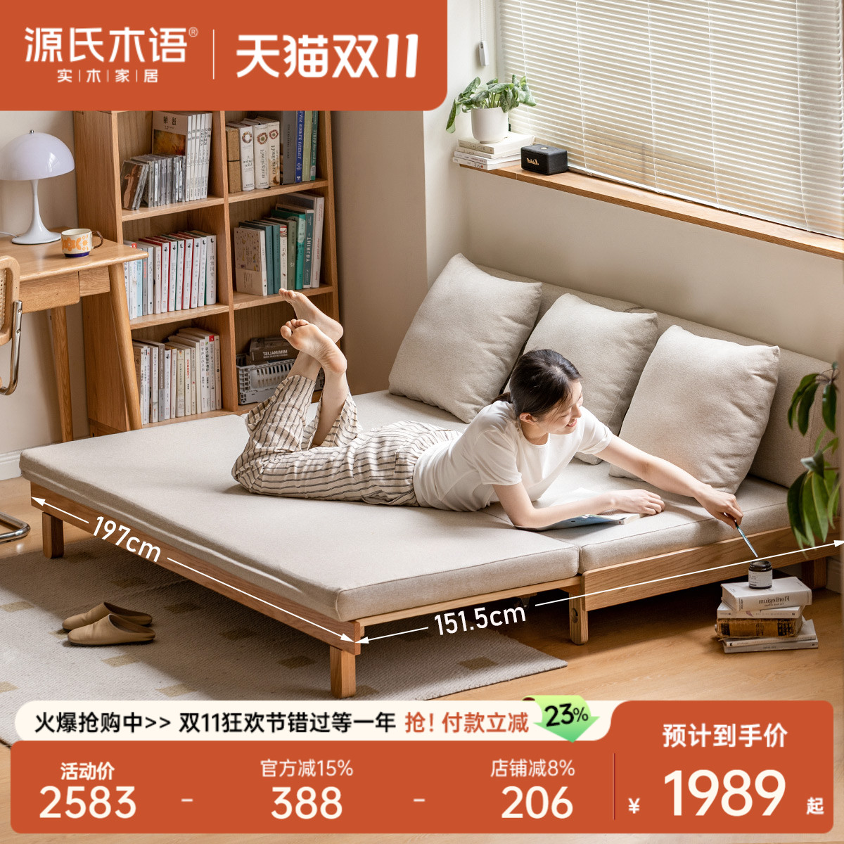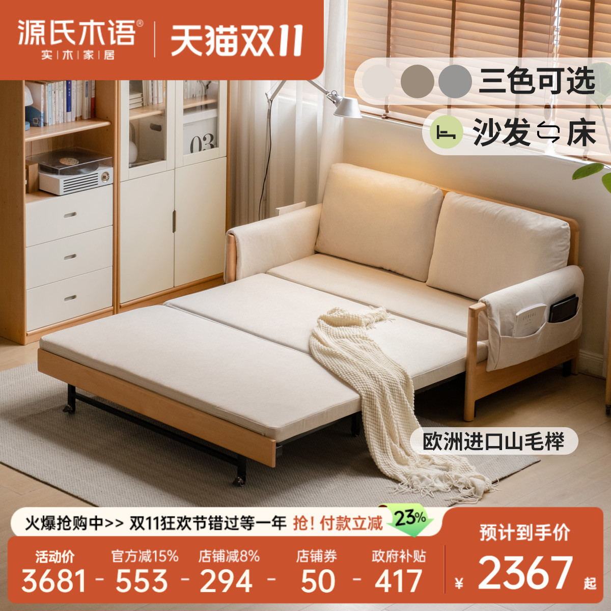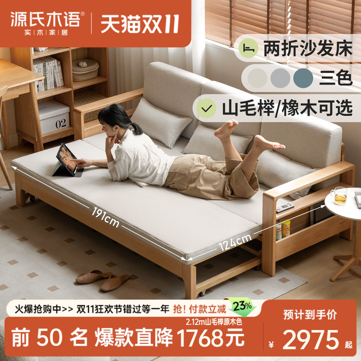 源氏木语实木沙发床现代简约可折叠床北欧小户型客厅两用双人沙发