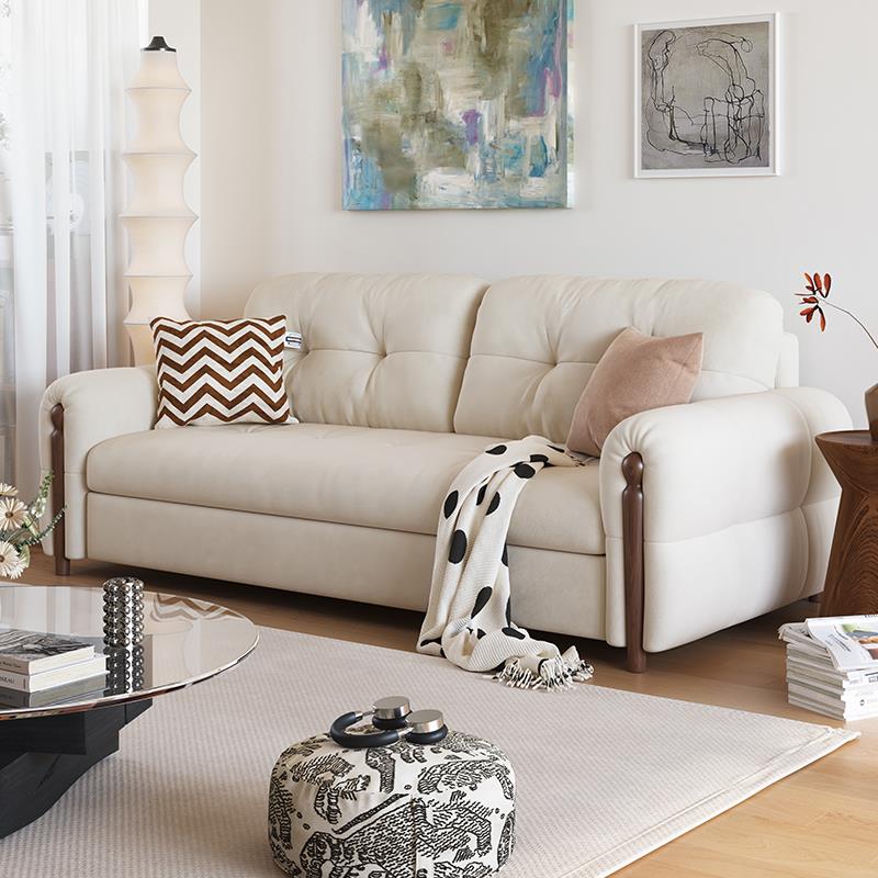 木宫匠家具复古实木折叠沙发床2025新款小户型客厅双人沙发床两用