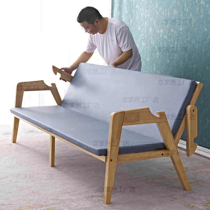 北欧实木折叠沙发床双人单人两用小户型坐卧床多功能客厅收纳沙发
