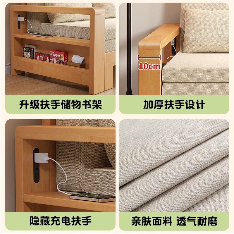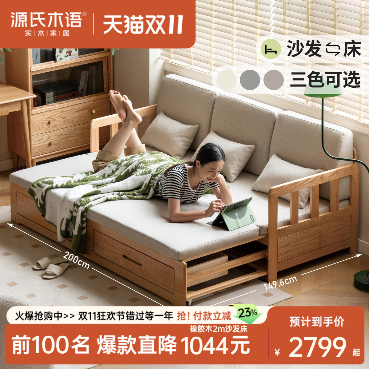 源氏木语全实木沙发床折叠两用简约坐卧伸缩床小户型客厅储物沙发