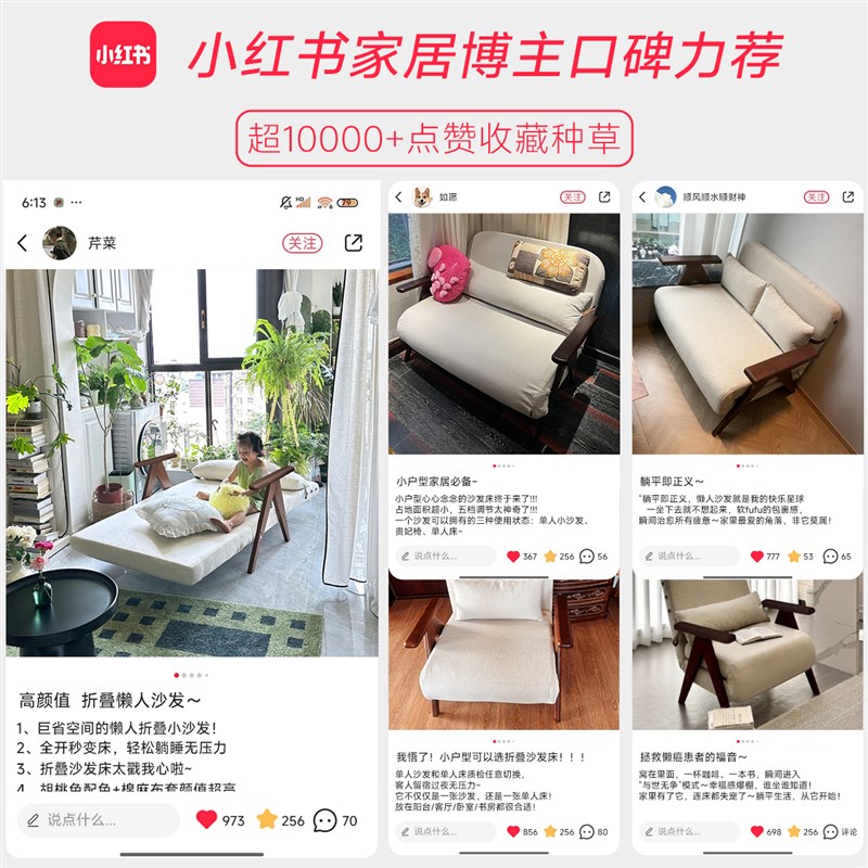 北欧实木折叠沙发床双人单人两用小户型坐卧床多功Q能客厅1.5米1.