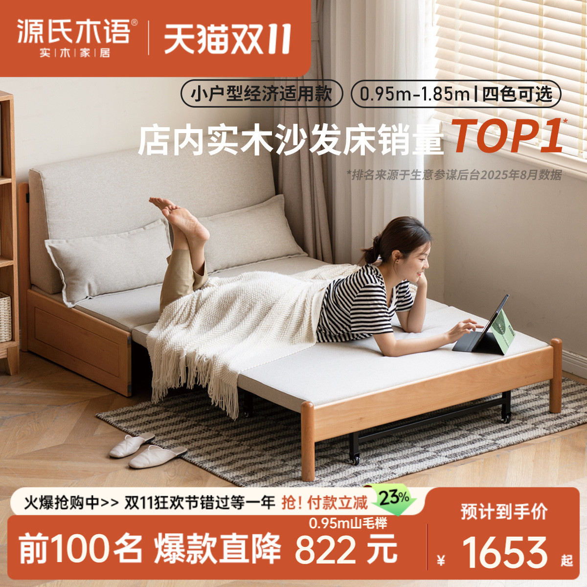 源氏木语实木沙发床现代简约客厅多功能两用床北欧小户型可折叠床