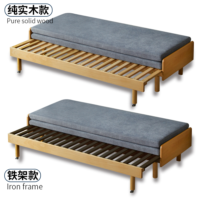伸缩床小户型客厅实木折叠沙发床两用双人单人坐卧两用床铁推拉床
