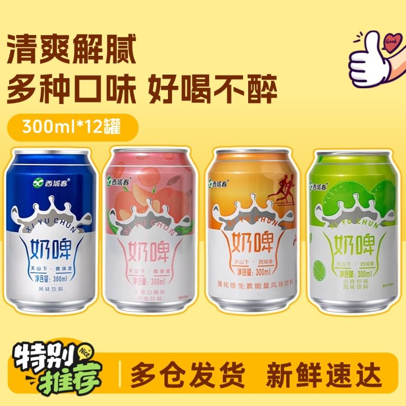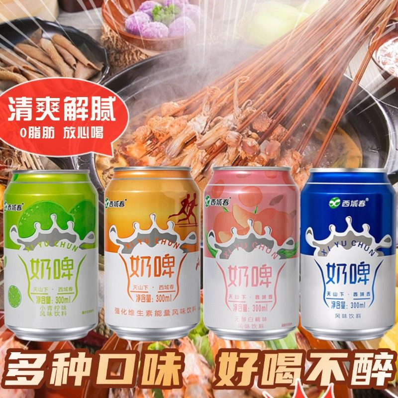 新疆西域春奶啤300ml罐特产乳酸菌风味饮品非啤酒白桃小青柠饮料