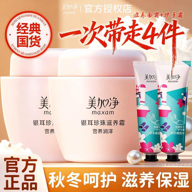 美加净银耳珍珠霜官方旗舰店正品滋养面霜120g保湿滋润补水雪花膏