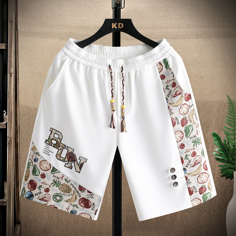 高档中国夏季短裤新款宽松裤子国潮男士裤衩复古休闲沙滩裤五分裤