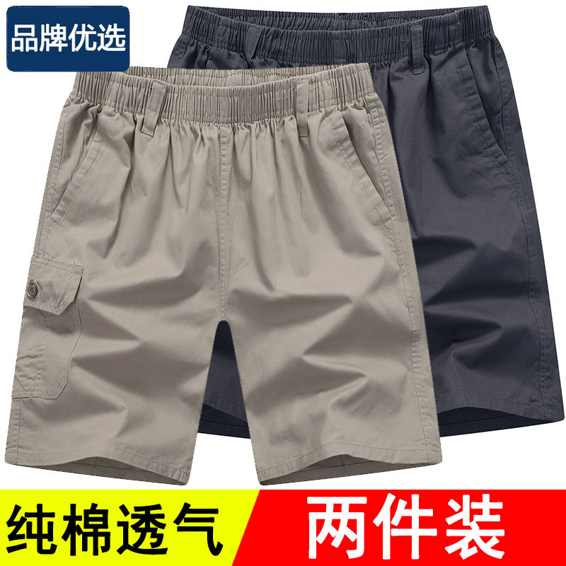 纯棉宽松透气大码拉链五分裤爸爸夏季短裤中老年男士松紧腰休闲裤