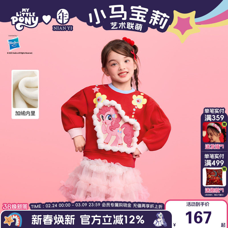 小马宝莉联名年衣童装卫衣加绒秋冬新款女童可爱儿童灯笼袖上毛衣