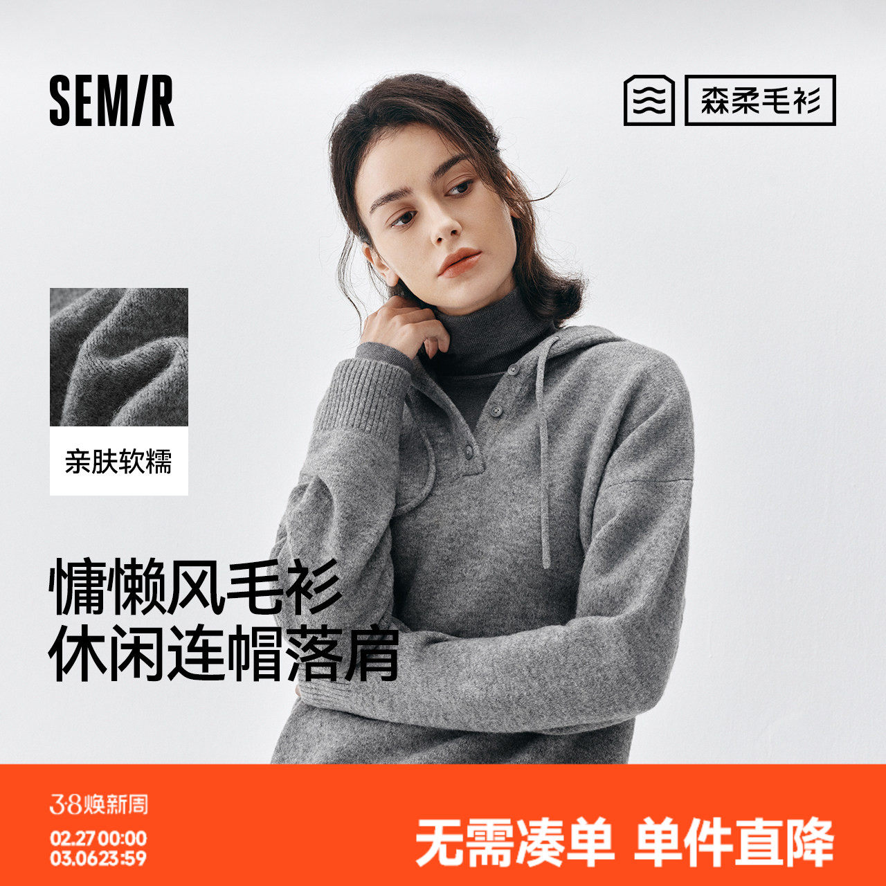 商场同款|森柔森马毛衣女冬季连帽卫衣外套2025新款简约百搭毛衫