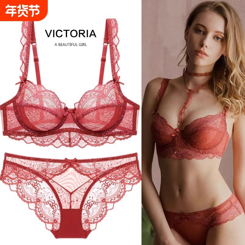 - 大红色内衣文胸套装