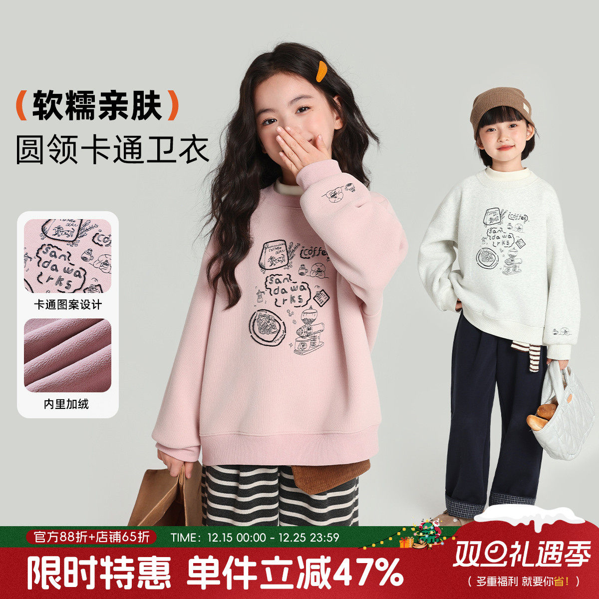 - 童装 加绒卫衣女