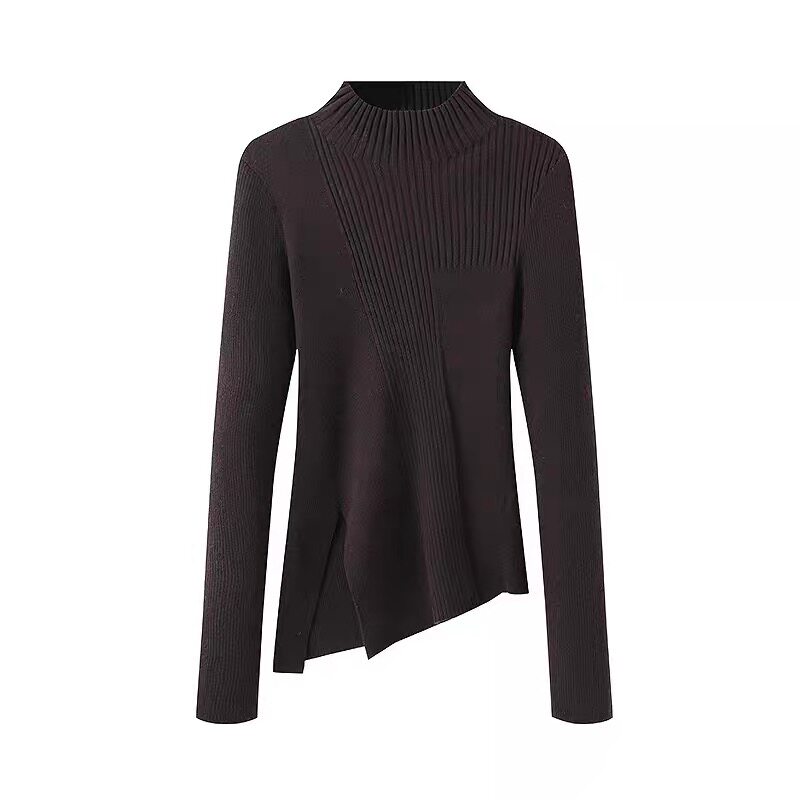 欧货2025年秋冬洋气坑条纹半高领针织衫上衣不规则开叉毛衣内搭女