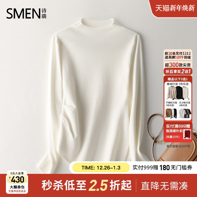 【商场同款】Smen诗萌秋冬打底半高领毛衣长袖不规则开叉针织衫
