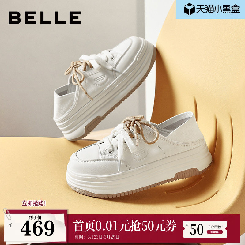 百丽厚底增高小白板鞋女2026新款两穿一脚蹬休闲运动鞋子F6N1DA