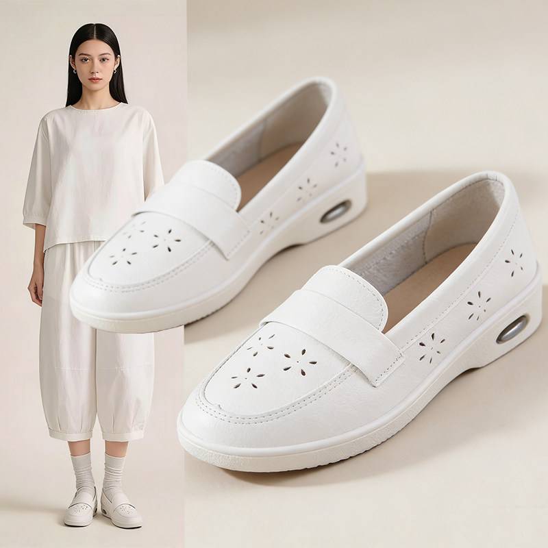 一脚蹬小白鞋女2026年春季新款百搭真皮爆款乐福鞋护士小皮鞋厚底