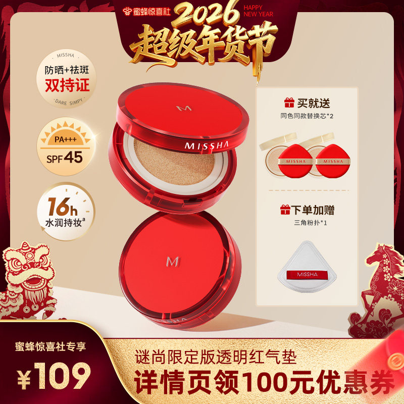 【专享】Missha谜尚红气垫bb霜防晒遮瑕美白水润保湿持久不易脱妆