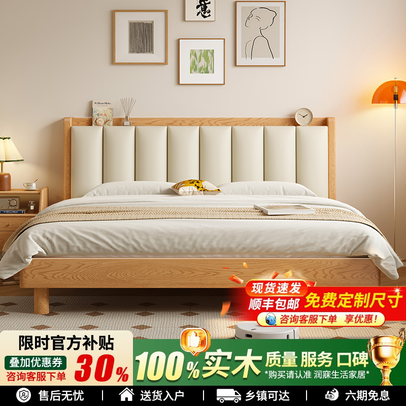 床全实木加厚软包1.8米双人橡木床家用主卧1.2米单人床架出租房用