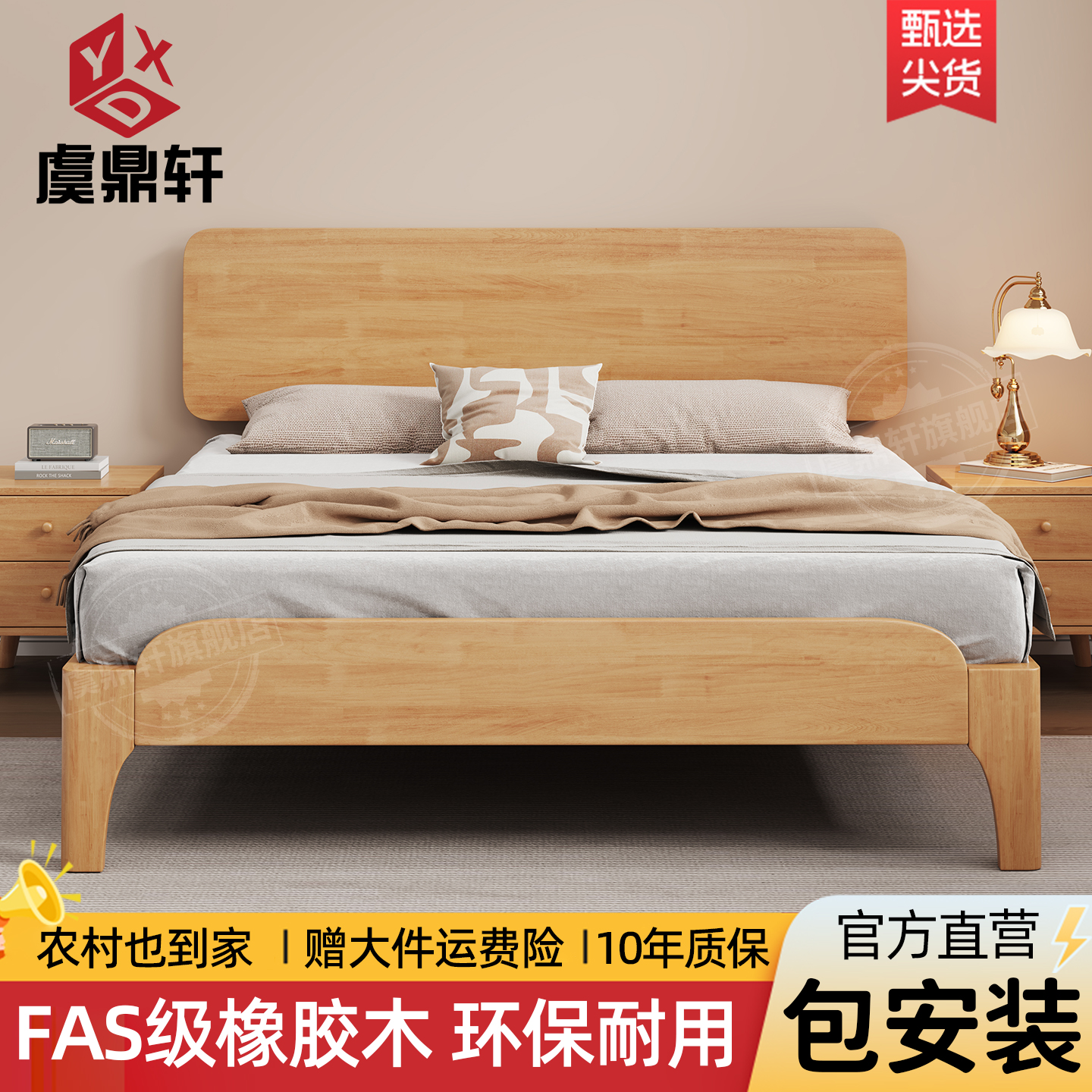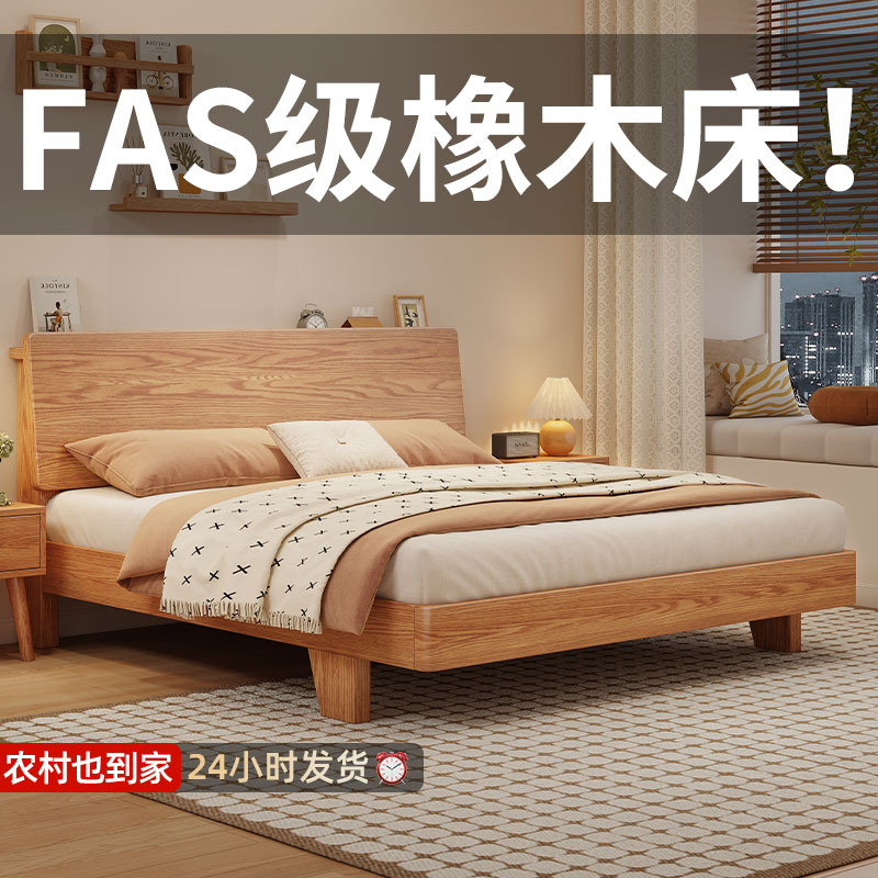 橡木床全实木床1米8双人床原木风现代简约1.52米单人床架出租房用
