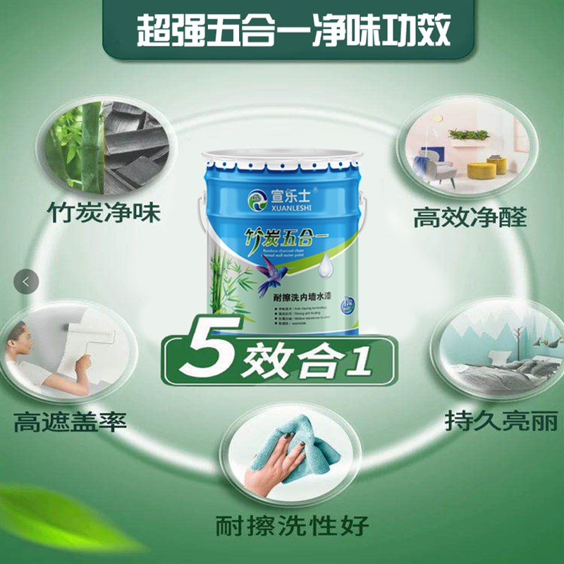 超耐擦洗净味竹炭内墙乳胶漆家用白色墙面漆自刷室内油漆水性涂料