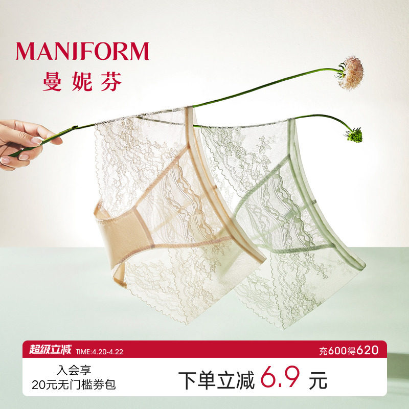 曼妮芬内裤高颜值女士舒适薄中低腰三角裤性感蕾丝裤抗菌内裆底裤