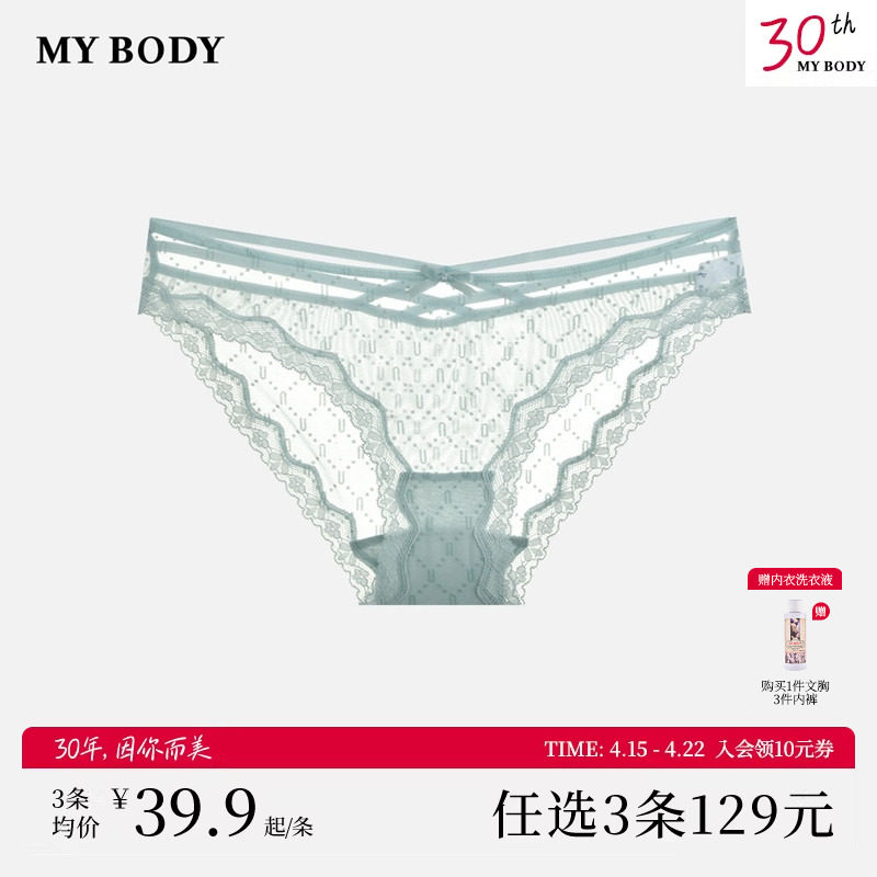 3件129|商场同款MYBODY内裤女性感蕾丝网纱纯棉裆轻薄低腰三角裤