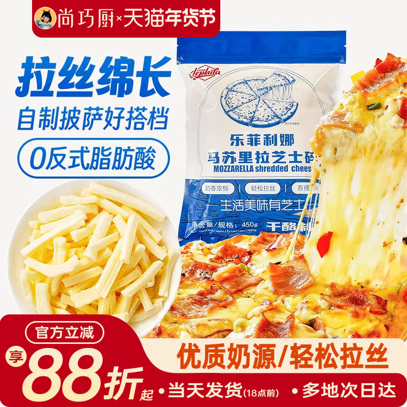 尚巧厨马苏里拉芝士碎450g拉丝家用披萨奶油奶酪条烘焙官方旗舰店