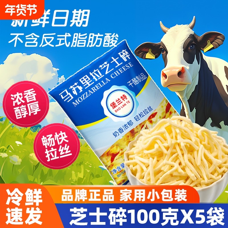 堡兰特马苏里拉芝士碎拉丝家用芝士做披萨奶油奶酪条烘焙材料100g