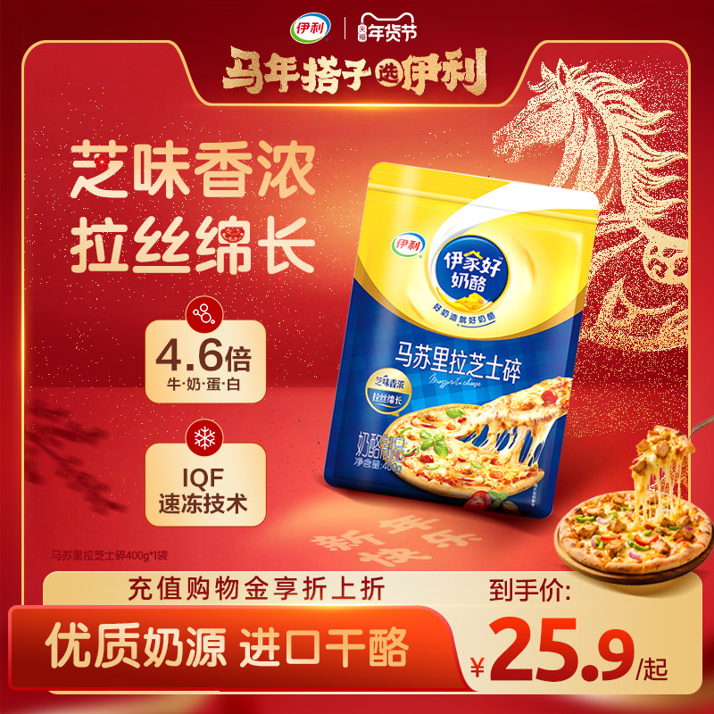 伊利马苏里拉芝士碎拉丝家用烘焙原料早餐披萨奶酪条奶油烘焙材料