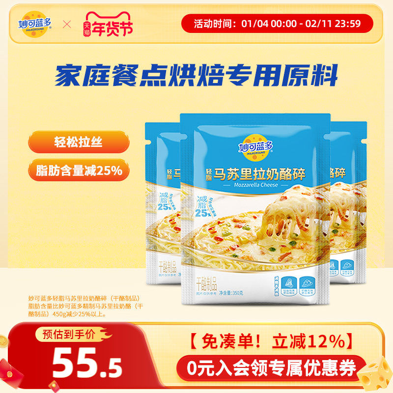 妙可蓝多马苏里拉芝士碎烘焙轻脂350g披萨原料专用奶香浓郁拉丝
