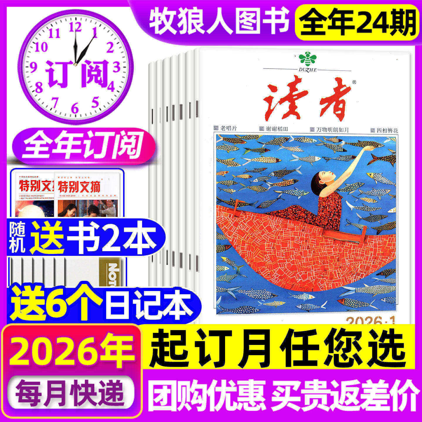 读者杂志2026年1-12月【全年订阅共24期赠书+笔记本】2025年读者旗舰店初高中生版青春励志意林青年文摘课外阅读作文素材2024过刊