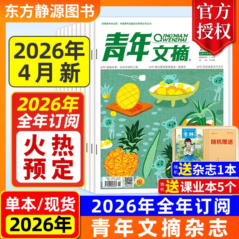 【2026全年订阅】青年文摘杂志初中版2025年全年现货【全年/半年订阅】(送好礼)高中生作文素材中高考励志文摘课外阅读过刊读者