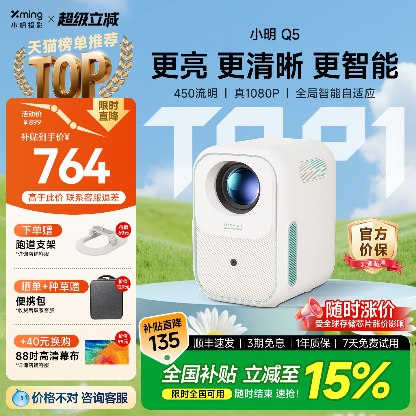 【政府补贴15%】小明Q5智能投影仪家用投影机小型宿舍卧室游戏家庭影院一体机便携露营宿舍神器投屏可连手机