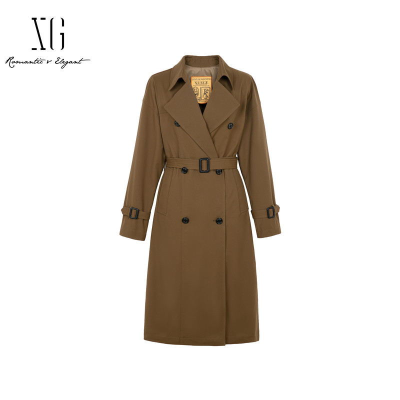 XG/雪歌2025秋季新款大廓型长款双排扣中长款风衣女XJ308008A509
