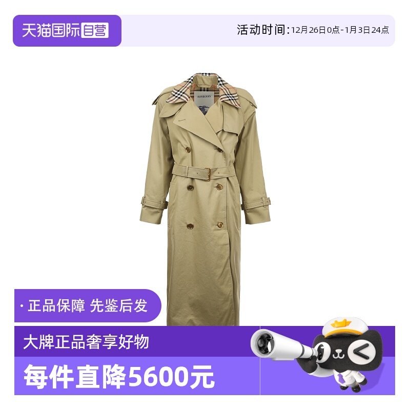 【自营】BURBERRY/博柏利女士FW25格纹衣领双排扣中长款风衣外套