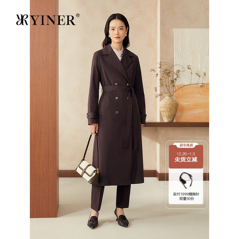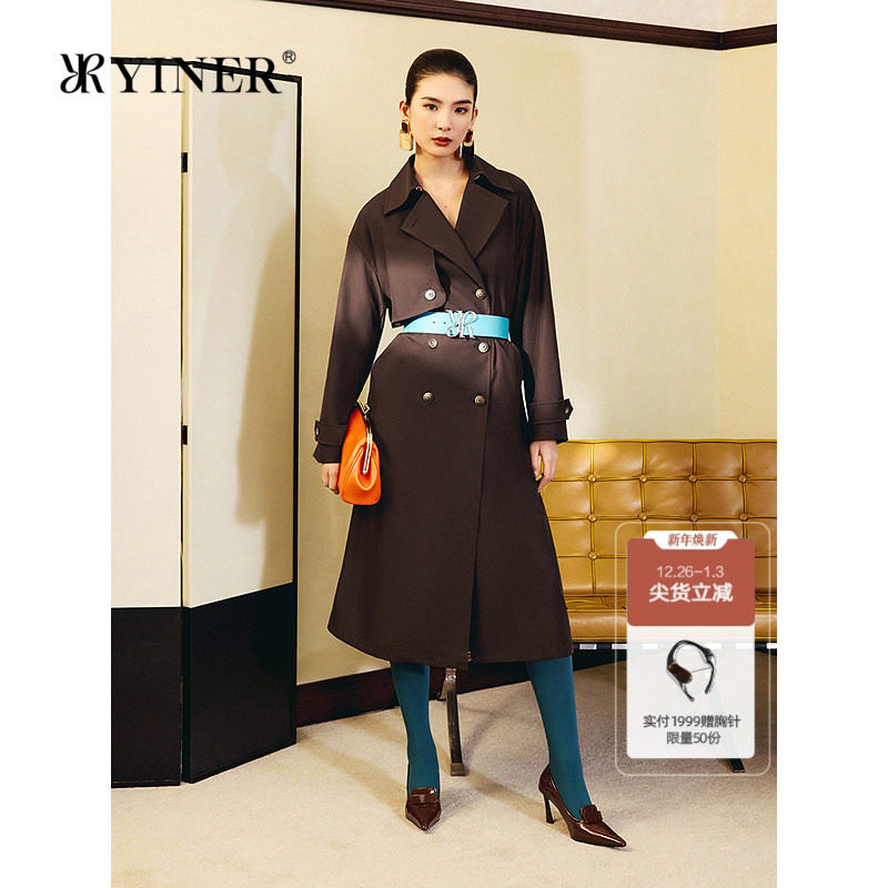 【醋酸系列】YINER音儿2025春季新款复古双排扣中长款风衣外套