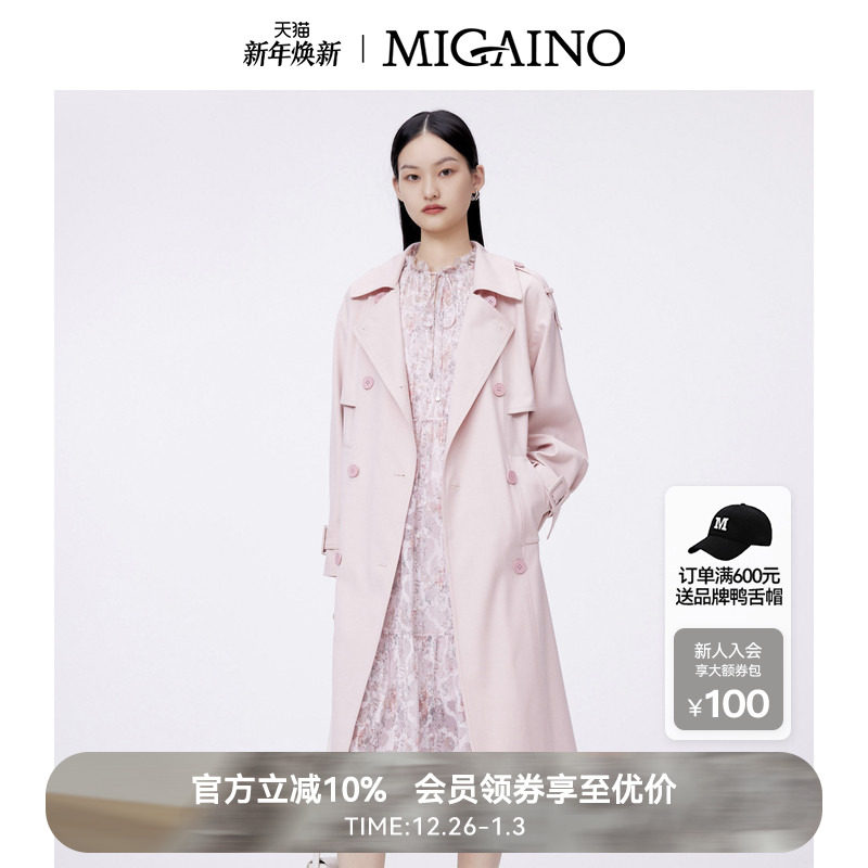 Migaino曼娅奴风衣春季新款双排扣中长款风衣外套MO12HB017