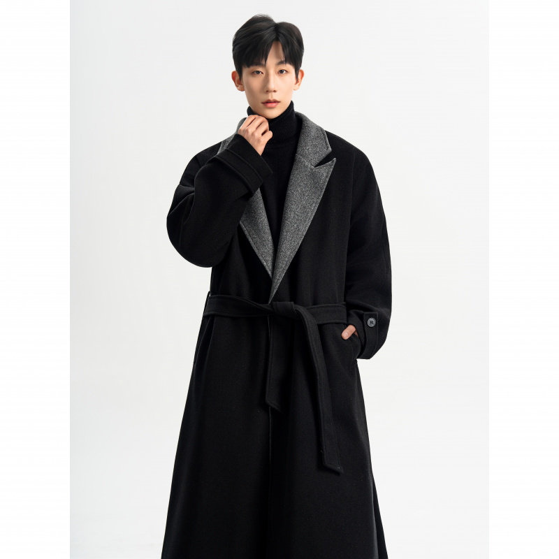 冬季毛呢大衣男中长款过膝西装领双排扣呢子风衣外套加厚ins潮流