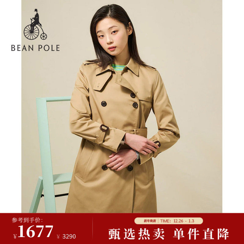 【新品】BEANPOLE滨波 2025秋冬女士老钱风双排扣中长款风衣外套