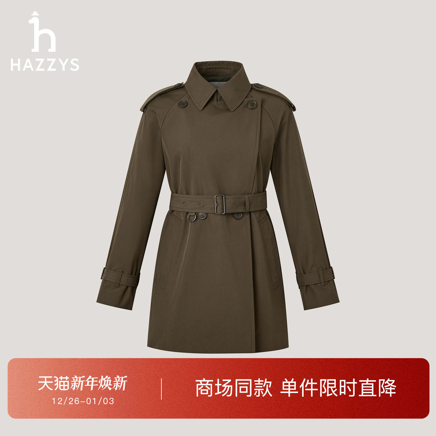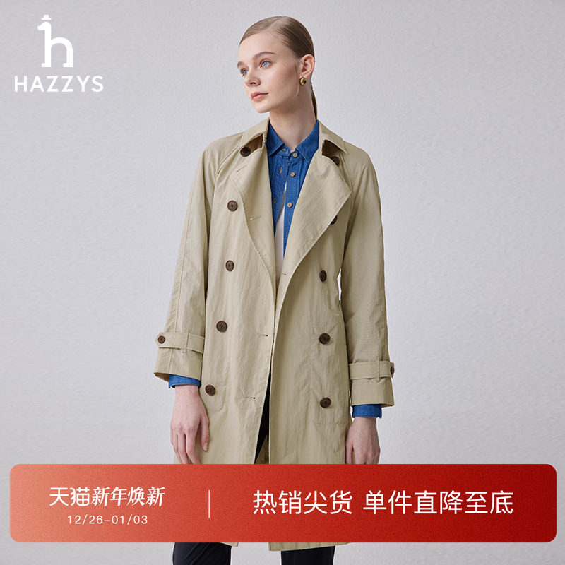 【商场同款】Hazzys哈吉斯双排扣中长款风衣女2025年秋季新款外套
