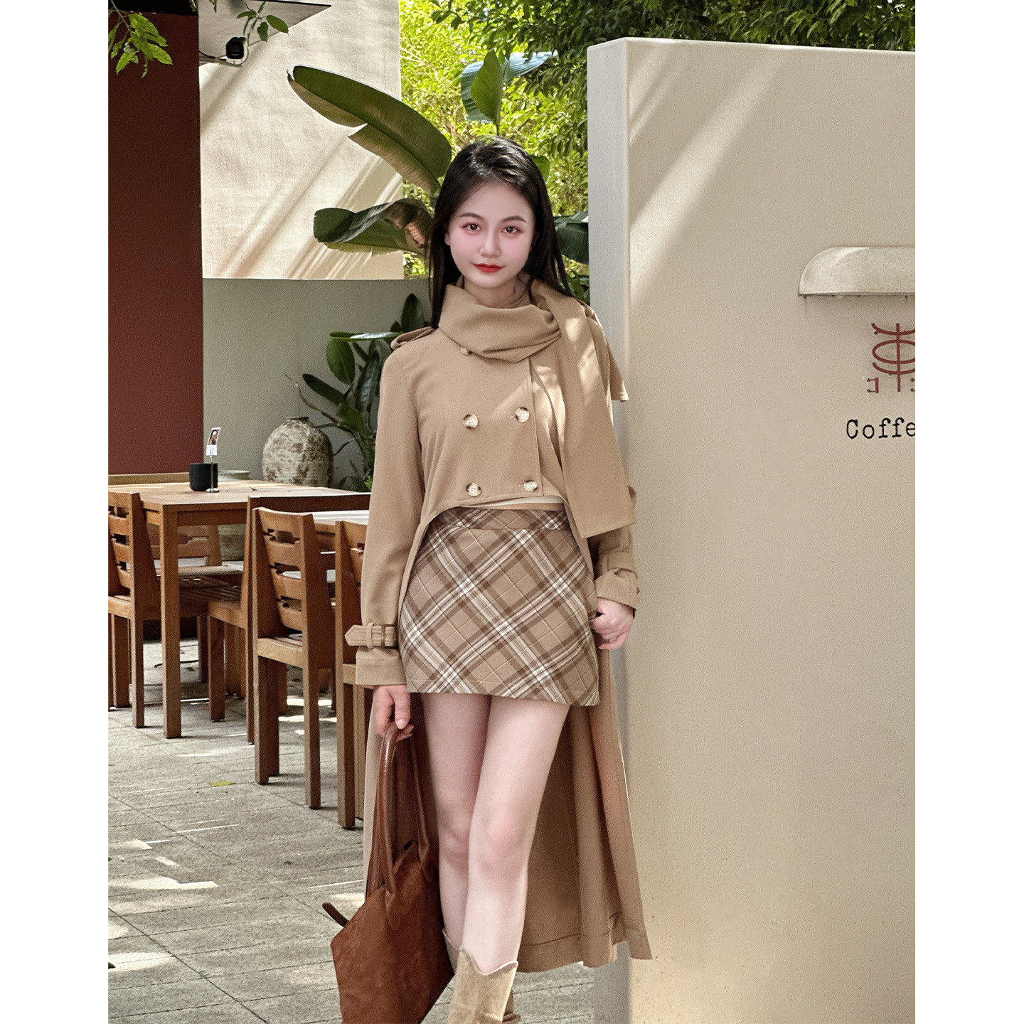 【月光鎏金】小娜椒小个子秋季款外套高级气质双排扣中长款风衣女