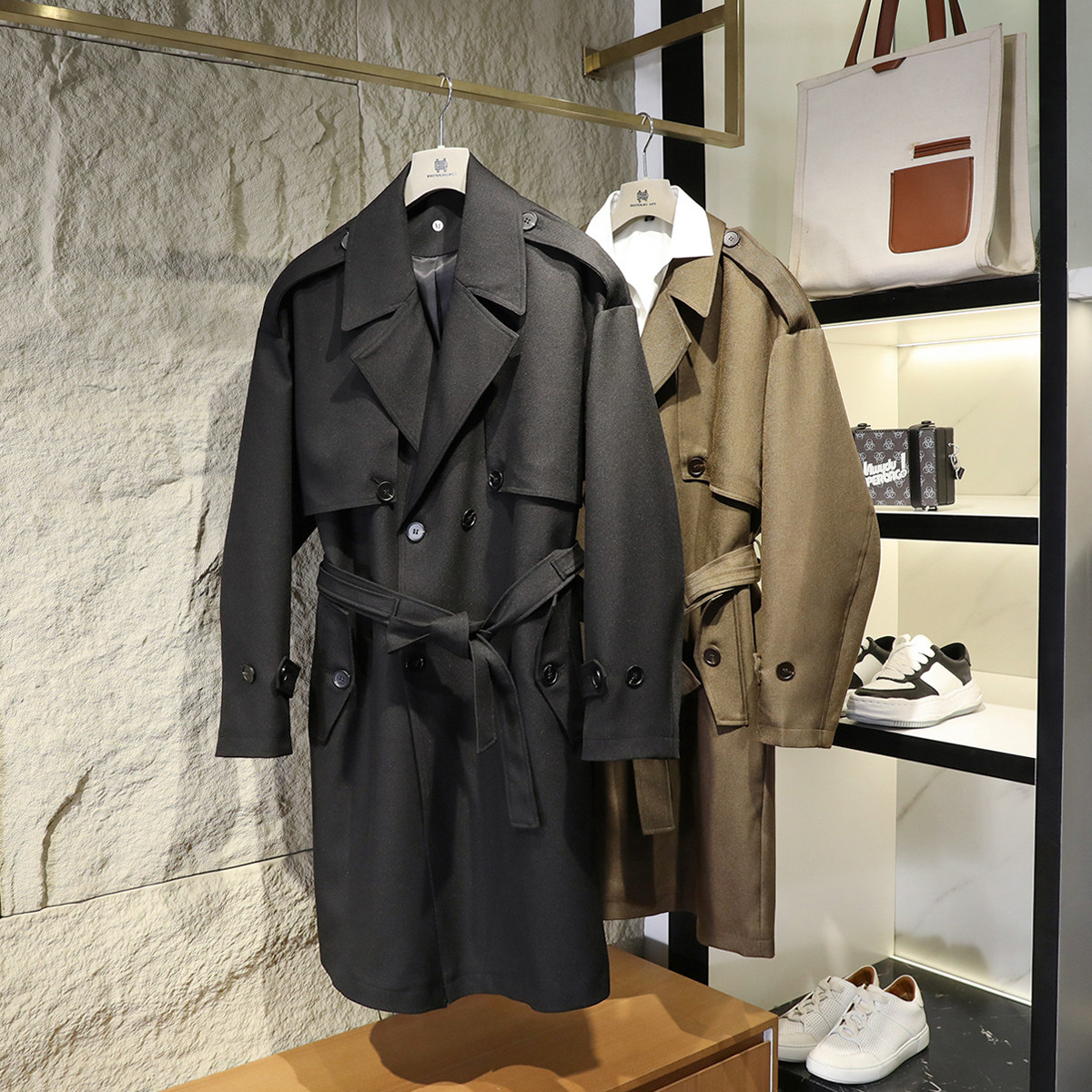 2025秋冬季新款男生双排扣中长款风衣男垫肩西装外套过膝薄款大衣