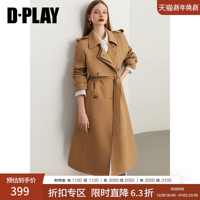 23区日系春季通勤直筒棉混纺双排扣中长款风衣腰带长外套商场同款