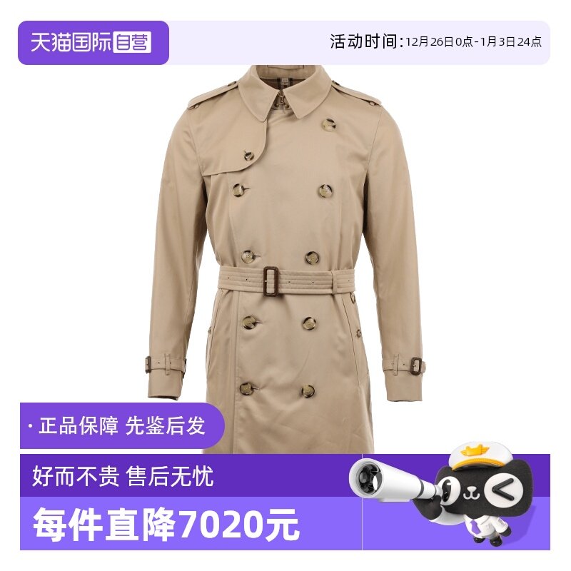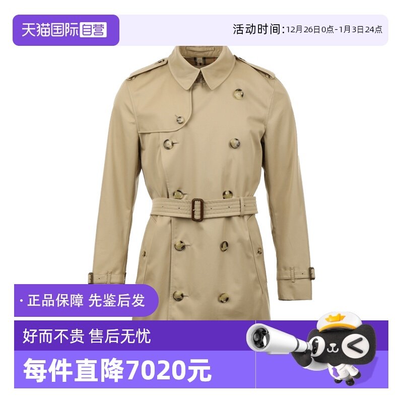 【自营】BURBERRY/博柏利男士肯辛顿版型双排扣中长款风衣外套