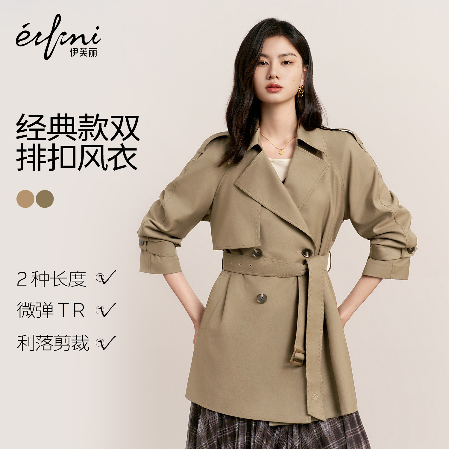 伊芙丽outlets店老钱风经典卡其双排扣中长款风衣外套短款春秋女